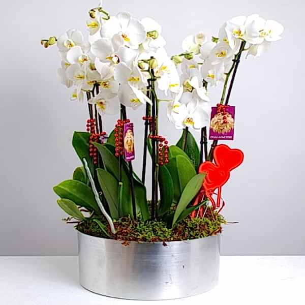 10 Dallı Beyaz Orkide Aranjmanı.