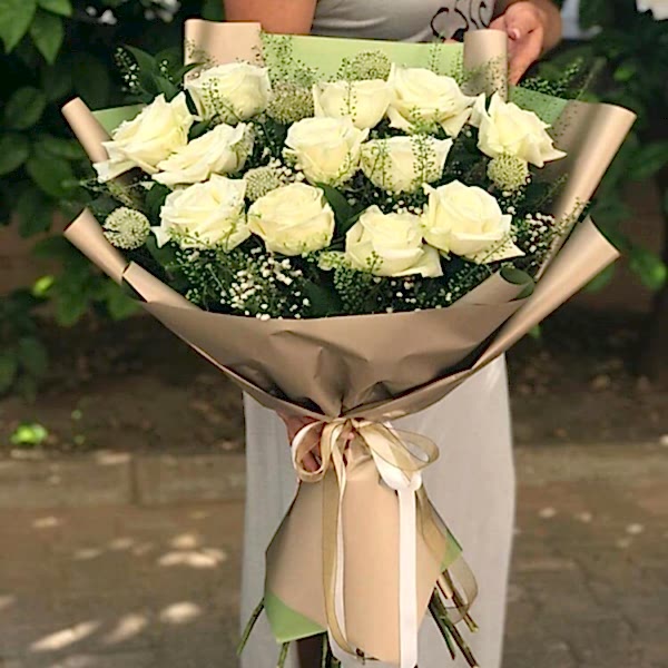 12 adet beyaz gül buketi