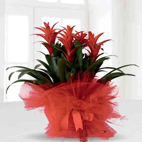 4 Adet Guzmanya Bitkisi,Seramik Vazo