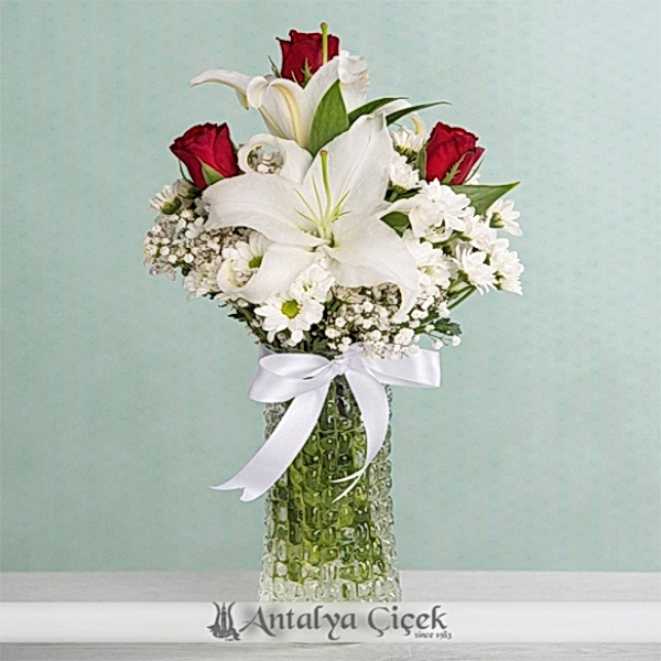 Her Zaman Taze Çiçekler Vazoda Gül ve Lilyumlar