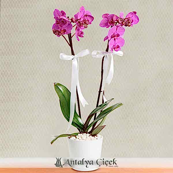 Tam Saatinde Teslimat Mor Orkide (Çift Dallı)