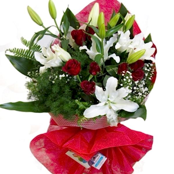 9 Adet Kırmızı Gül,3 Dal Kazablanka,Cipso ve Yeşillikler