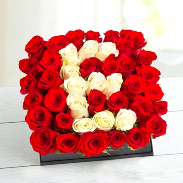 Kırmızı Gül ve Beyaz Gül Karışık Kutuda Arajman 43 adet Gül