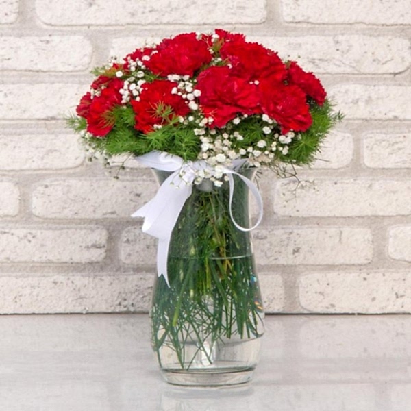 Kırmızı Karanfil Aranjmanı &Paşabahçe Vazoda 15 Adet Karanfil
